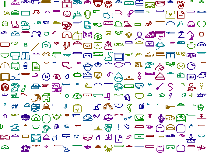 Using Recurrent Neural Networks to generate Icons and Hieroglyphs. The icons are encoded in a machine learnable format.