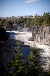 Das Städtchen Grand Falls wurde nach den spektakulären Wasserfällen hier benannt. Grand Falls ist eine der ältesten Siedlungen in New Brunswick und 1686 schon erwähnt. Davor lebten hier die Malecite Indianer und hieß Chicanekapeag (heißt „großer Zerstörer“). Das schöne und lebhafte Städtchen ist das wirtschaftliche Zentrum dieser Region und eine große McCain Produktion existiert. Und es ist ein Touristenmagnet - dank des beeindruckenden Wasserfalls und der großen Felsenschlucht des St. John. Mit ungeheuerer Wucht stürzen sich riesige Wassermassen 23 m in die Tiefe und dann durch die enge und hohe Schlucht. Man kann das Schauspiel von verschiedenen Seiten betrachten. Besonders schön im Abendlicht.