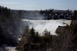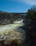 Diese Fahrt geht nach Norden immer dem Saint John River entlang. Wir sind ausschließlich kleine Nebenstrassen direkt am Fluss gefahren. Erster Halt war quasi noch in der Stadt Saint John und zwar an den „Reversing Falls“. Einem einmaligen Naturphänomen. Der riesige und sehr wasserreiche Saint John stürzt kurz vor dem Hafen durch eine enge Felsenpassage. Bei Eintreten der Flut steigt dass Meerwasser so gewaltig (6 - 8m) dass sich die Flussrichtung hier umkehrt und das Wasser diesen Wasserfall wieder rauf fließt. Bei Eintreten der Ebbe fließt die doppelte Menge Wasser wieder runter und es entstehen enorme Wasserwirbel. Es wird einem ganz anders wenn man die gewaltigen Kräfte sieht.