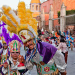 In erster Linie sind die aktiven Teilnehmer indianische Azteken die als traditionell gekleidete Tänzer in San Miguel de Allende - in den Strassen der Stadt - tanzen und auch sehr sehr religiös Handlungen mit ihren traditionellen Riten mischen. Ein tolles farbenfrohes Fest mit alter Musik und wunderbaren Masken und Kostümen.