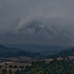 Von Teotihuacan muss man leider durch die Aussenbezirke von Mexico City - was sehr zeitraubend ist. Und dann über Ixtapaluca und MEX 115 am Iztaccihuatl Vulkan (5.230 m hoch) und am Popocatepetl Vulkan (5.465 m hoch) vorbei gefahren. Die beiden waren der Grund für diese Strecke - leider waren beide total in Wolken gehüllt und haben sich irgendwie vor uns versteckt. Schade!!