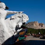 1939 entschieden der Sioux Häuptling Henry Standing Bear und weitere Indianer Leader ein Monument zu bauen das der Welt zeigen soll dass es nicht nur unter den Weißen verehrte Helden gab. Sie beauftragten den Bostoner Bildhauer Korczak Ziolkowski (1908 - 1982) mit der Erschaffung einer Riesenskulptur als indianisches Gegenstück zu Mt. Rushmore. Abgebildet wird der Sioux Häuptling und Krieger „Crazy Horse“ mit seinem Pferd.