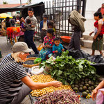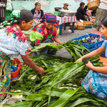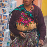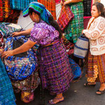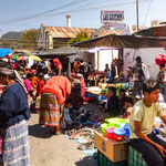 Am nächsten Morgen war großer Wochenmarkt in der Stadt. Bereits um 2 Uhr morgens kamen die Lieferwagen und parkten direkt neben uns ihre Waren aus. Meist Frauen der umliegenden Maya-Dörfer, in ihren farbenprächtigen Trachten, verkaufen hier ihre Waren. Wir waren die einzigen Touristen weit und breit und wurden somit genauso bestaunt wie umgekehrt. Es ist immer wieder ein Genuss diesem bunte Treiben zuzuschauen. Fotografiert haben wir nur versteckt aus der Hüfte.